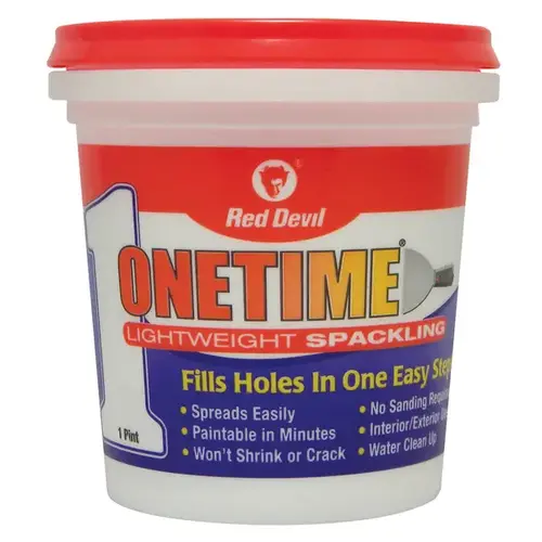 Onetime Patch & Prime Spackling compound is a lightweight wall repair compound designed to accept premium paints without a primer. Product contains no asbestos, may be used inside or out and offers water cleanup. Formulation is designed not to crack or shrink and exhibits a very low-VOC content.