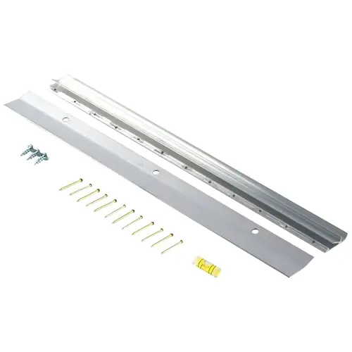 The hanger consists of two aluminum interlocking brackets modeled after the French cleat featuring a built-in level which ensures an accurate installation. The aircraft grade aluminum brackets will not corrode and can be used indoors or outdoors. The system uses small nails which leave pin size holes and a foam back to protect walls from scuffs and marks. Once installed it can be adjusted left or right. Nail hole punched every 1 in. Holds 10 lb per nail used. Patented. Hang it level every time.
