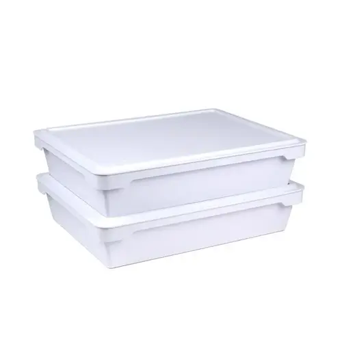 Set of 2 Ooni dough boxes with 2 stackable lids. Space-saving solution to prepare for a pizza party. Sleek design makes it easy to remove dough. Fridge safe and easy to clean. Pair with the Ooni Pizza Prep Lid, sold seperately, which mounts perfectly onto the Ooni Pizza Dough Boxes, to use as an additional pizza prep surface when tight on space.