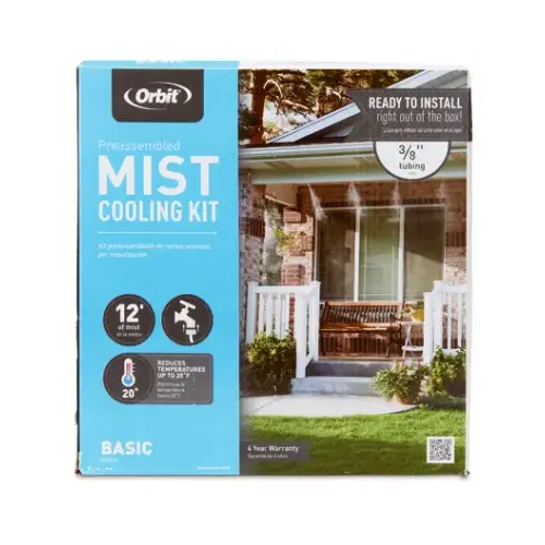 Enjoy the outdoors in any heat with the basic preassembled mist cooling kit. The kits flexible, UV-resistant tubing consists of 10 ft of feed line connected to 12 ft of mist line, creating 12 ft of linear mist cooling (24 sq-ft of mist area). Extension kits are available to expand your mist system to up to 50 ft (25 nozzles) with appropriate water pressure. The kit includes everything needed for a quick installation.