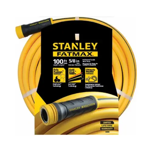 STANLEY FATMAX Garden Hose, 5/8 in Dia Outside, 100 ft L, Operating Pressure: 500 psi, Polyurethane/PVC, Yellow