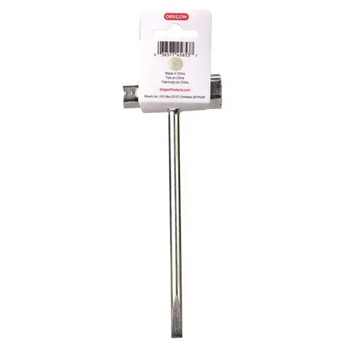 Scrench, chainsaw maintenance and repair tool, combination screwdriver and wrench in one handy tool. Use to remove bar mount nuts. For replacing the guide bar or chain. Use to adjust chain tension. For use with some of the most popular model chainsaw brands such as: Poulan, Poulan Pro, Husqvarna, Stihl, Echo, Shindaiwa, Jonsered and Partner.