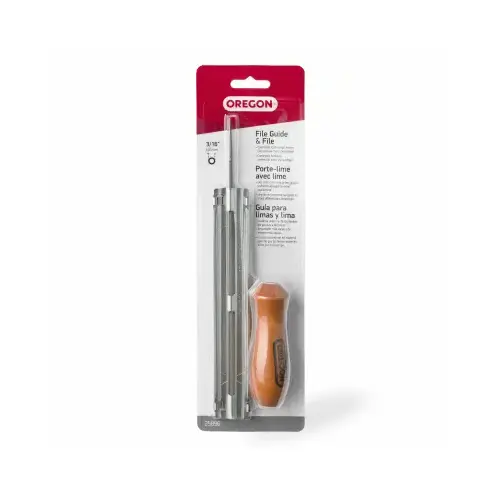 Guide holds file and indicates sharpening angle and eliminates guesswork. Includes: one premium round file, clearly marked guide and file handle.