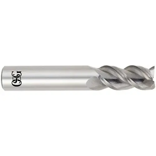 OSG 445-1562 Square End Mill: 5/32 inch Dia, 9/16 inch LOC, 3/16 inch Shank Dia, 2 inch OAL, 3 Flutes, Solid Carbide Bright/Uncoated