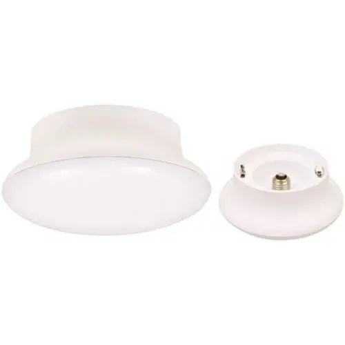 Medium base E26 retrofit ceiling light for installation into existing porcelain socket. Replacement for incandescent. Not dimmable. 120 V. 50,000 hrs average life. Screws into most existing plastic and porcelain lamp holders without any wiring required. Also installs in junction boxes for new construction applications. Suitable for damp and dry locations.