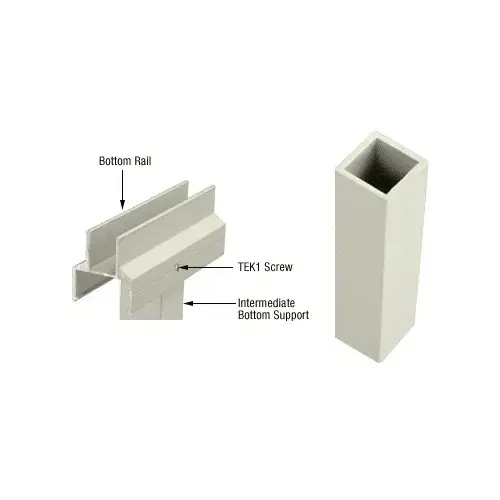 The CRL Intermediate Bottom Support was designed to fit underneath the Bottom Rail for additional strength. Connects to Bottom Rail with two Cat. No. TEK1 Self-Tapping Tek Screws. Support is 12" (305 mm) in length.