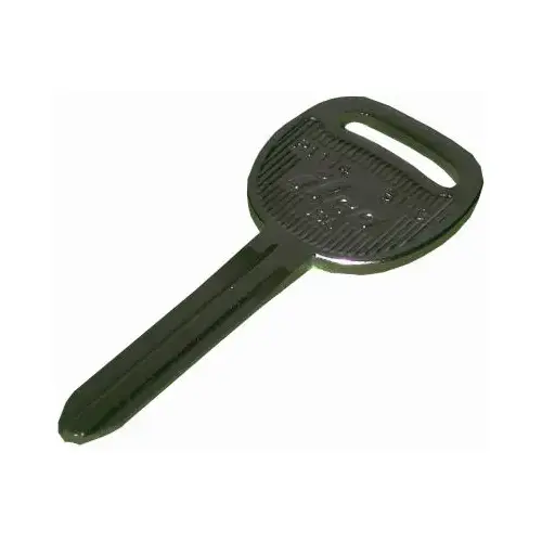 This automotive key blank is manufactured in from solid brass. It is nickel plated to assure a long-lasting, durable and bright finish. This is a genuine KABA ILCO product.