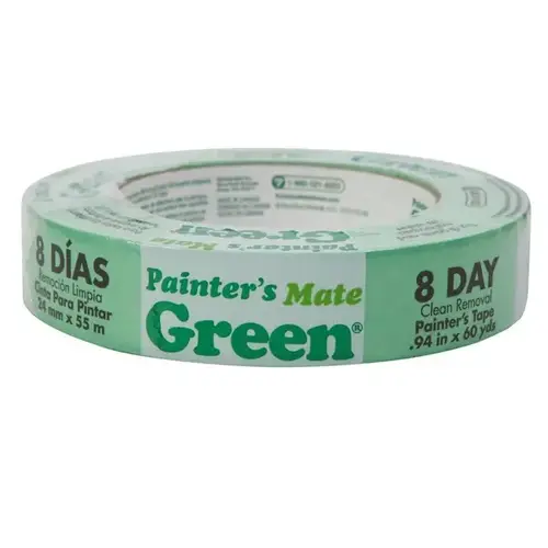With its unique UV-resistant formula and premium paper, Painter's Mate Green brand painter's tape can be used on a variety of surfaces, including painted walls, woodwork, glass, metal and vinyl. This professional painter's tape can easily be removed from your walls without leaving a residue for up to eight days, even in direct sunlight and delivers professional paint results at an exceptional value.