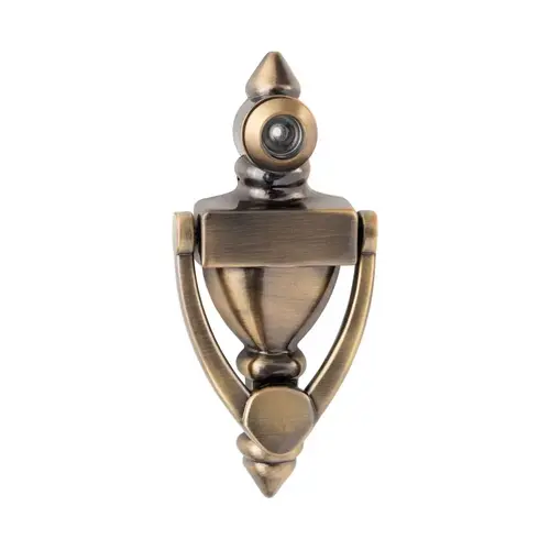 4" High Door Knocker with 160 Degree Viewer Antique Brass Finish