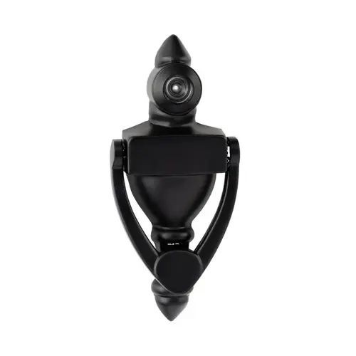 4" High Door Knocker with UL 160 Degree Door Viewer Matte Black Finish