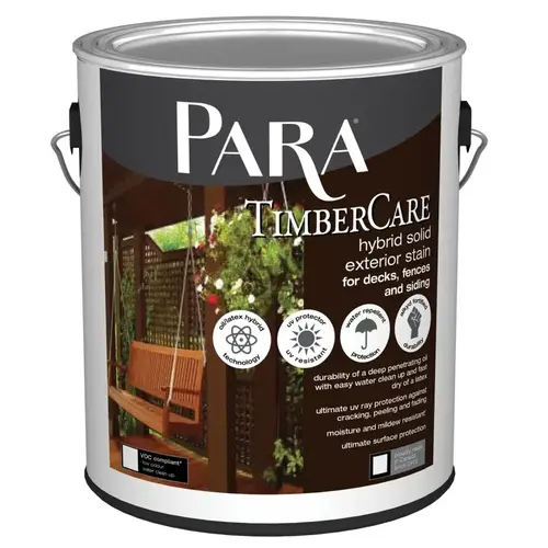 Timbercare exterior hybrid solid stain with its alkyd fortified acrylic formula is a top quality self priming and sealer made of an alkyd and acrylic latex blend. This hybrid blend offering the superior penetration and adhesion properties of an oil-based primer and the long-lasting durability of a 100% acrylic. Protects and beautifies exterior new wood, weathered wood or previously painted or stained wood surfaces. Recommended for wood siding, fences, trim, decks and outside furniture.