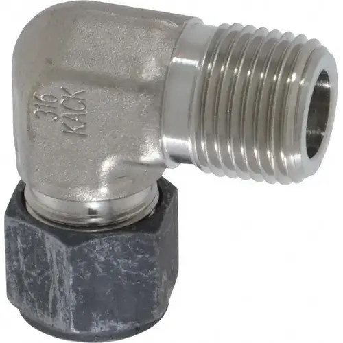 Compression Tube Male Elbow: 1/2" Thread, Compression x MNPT Stainless Steel