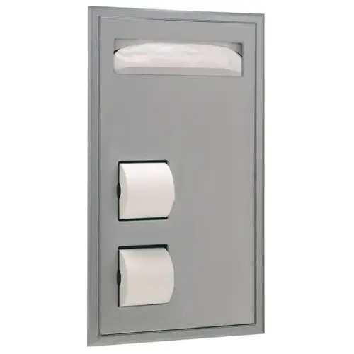 All Welded Construction; Door Unlocks with Key Provided and Swings Open for Filling; Holds 250 Toilet Seat Covers and Two Standard Core Tissue Rolls for Each Compartment; Theft-Resistant Spindles