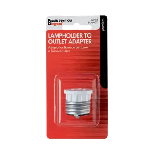 15A, 125V, 600W, White Medium Base Lamp Holder Adapter, Lamp Holder To Outlet, Blister Pack.