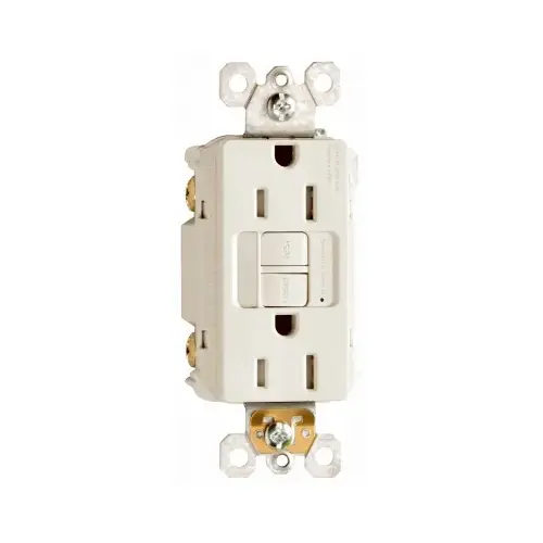 15A, 125V, Light Almond, Decorator Combination Night Light & Self Testing Tamper Resistant, GFCI Receptacle, Sealed LED Night Light, Photo Cell Turns Night Light On In The Dark & Off In The Daylight, High-Impact Thermoplastic Construction.