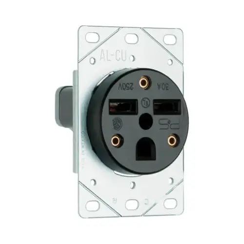 30A, 250V, Black, 2 Pole, 3 Wire Grounding, Flush Mount Power Receptacle, NEMA 6-30r, UL, UL Listed For Use With Aluminum Wire, Double Wipe Contacts Of High Performance Copper Based Alloy, Use With 2 Gang Wall Plate: S3862c, Window Box.