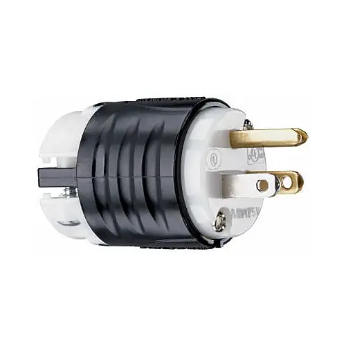 Pass & Seymour Electrical Plug, Straight Blade, 125 V, 15 A, 2 Pole, 3 Wires, 18 to 10 AWG Cable/Wire, Grounding Type: Grounded, IP20 IP, - 40 to 75 deg C Operating, Nylon, Black/White, Dimensions: 1.516 in W x 1.752 in D x 1.516 in H, NEMA 5-15P