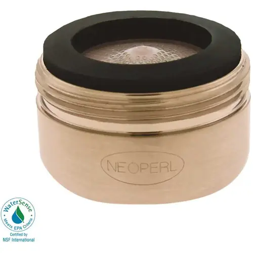 This NEOPERL 1.2 GPM PCA Aerator is a male 15/16 in.-27. The pressure compensating design helps to maintain a constant and comfortable water flow regardless of pressure fluctuations. This aerator also features an anti-clogging pink dome screen that filters sediment. The patented single piece construction is virtually unbreakable and lime resistant. Aerated stream and a solid brass housing with a Brushed Nickel finish.