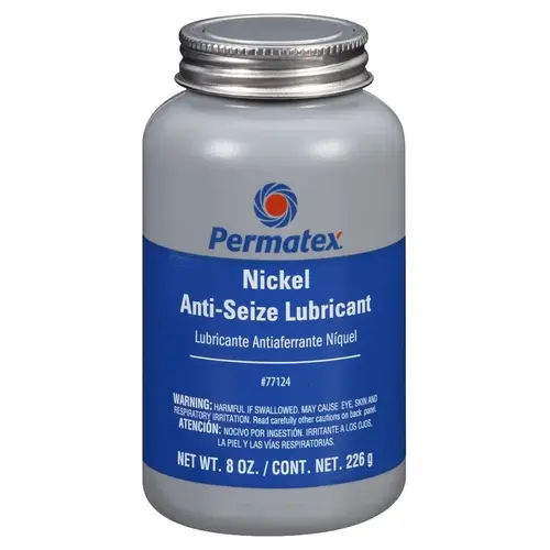 Permatex Nickel anti-seize lubricant is a high-temperature, high-quality, heavy-duty lubricant that resists galling and corrosion and reduces wear in heavy pressure applications. It contains tenacious metals, oils and graphite materials that cannot be burned away or removed by slow moving parts. It is recommended for use where copper contamination must be avoided, under conditions of extreme pressure and temperature and with stainless steel, titanium and nickel alloys.