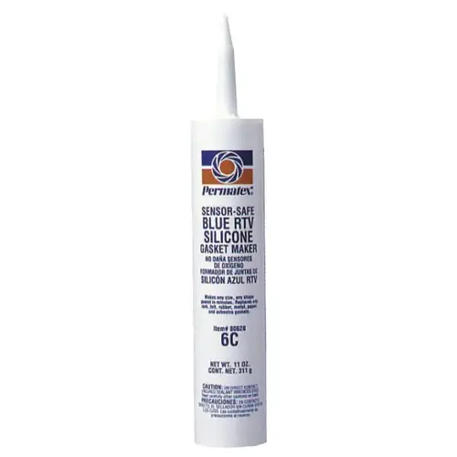 Permatex Sensor-Safe Blue RTV Silicone Gasket Maker, 11 Oz. cartridge, 6C, OEM specified, low odor formula, will not foul oxygen sensors, replaces almost any cut gasket, resists cracking, shrinking & migrating, coats per-cut gaskets to increase reliability, temperature range -65 F to 500 F (-54 C to 260 C) intermittent, resists auto & shop fluids. Automotive suggested applications: valve covers, oil pans, timing covers, water pumps, thermostat housings. Marine suggested applications include: valve covers, oil pans, intake manifold end seals, timing covers, water pumps, thermostat housings.