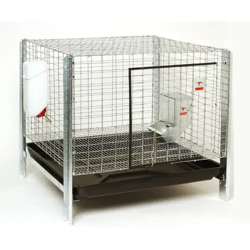 Everything you need to create a cozy home for your pet. Housing, feeder and water bottle are all included in this easy-to-assemble kit. You get a rust-resistant, chewproof wire mesh hutch with clips and special pliers to put it together, plus a plastic dropping pan and frame kit to attach the pan under the hutch for easier cleaning. You also get a 5 in wide galvanized metal sifter-bottom feeder with lid and a 32 oz (1 qt) plastic water bottle. Hutch measures 24 in square by 16 in high, assembly required. Can be used indoors or outdoors. Excellent for rabbits, hamsters, guinea pigs, chinchillas, ferrets, gerbils and other small animals.