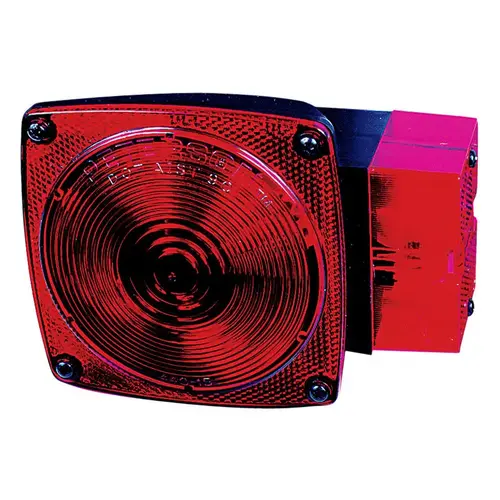 Includes the following functions: stop, turn, tail, rear clearance, rear reflex, side marker and side reflex. Features gaskets on both rear and side lenses. Grounds through mounting studs. Mounts on 2 in centers and includes mounting hardware.