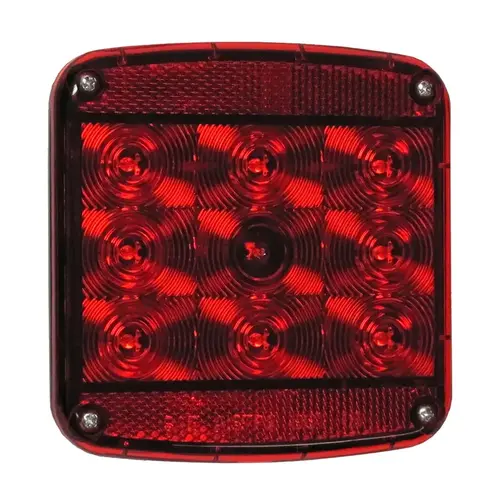 Solid state construction, no bulbs to break or burn out. 100,000 hrs rated life. Fully sealed, submersible construction. Potted circuitry(coated and sealed) protects against moisture, corrosion and vibration. Lower amp draw than incandescent lights. Designed to directly replace 440-Series incandescent lights. Integral, dedicated side marker diode. Exceeds all DOT rear lighting and reflex requirements for trailers less than 80 in wide. 4-1/2 in W x 4-1/2 in H x 2 in D.