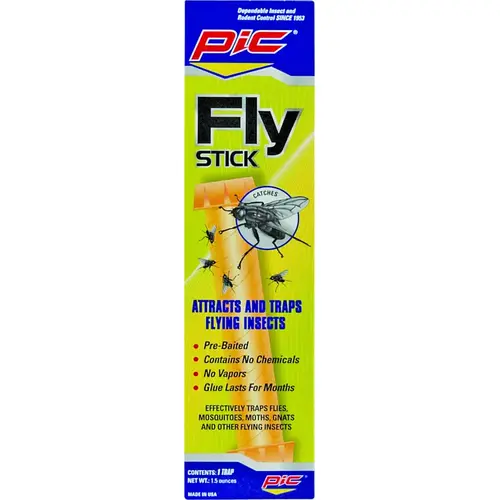 Pic fly stick is an effective way to control common houseflies, moths, horse flies and other flying insects indoors and out. Pic fly stick can be used in any room of the house, including food preparation areas because it gives off no vapors. For maximum results, place 1 teaspoon of a food attractant such as honey or chocolate syrup into the bottom bait cup.