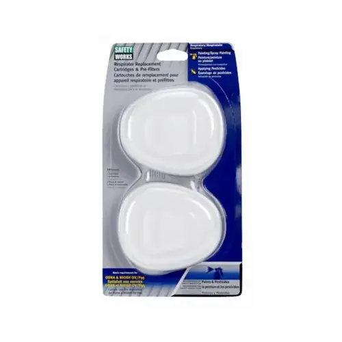 SAFETY WORKS Paint and Pesticide Replacement Cartridge and Pre-Filter, Filter Rating: P95, White, Suitable for: SWX Series Full Face pieces or Half-Mask Face pieces Respirator