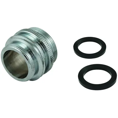 15/16-27 outside and 55/64-27 inside threads by 3/4 in hose connection or 55/64 in outside threads.