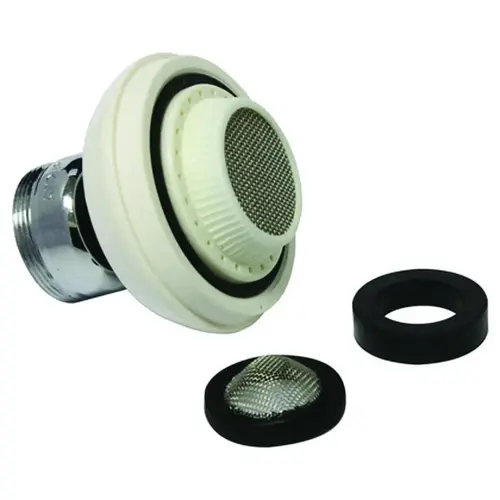 Swivel spray aerator. male/female, brass nut. For use on standard kitchen faucets with inside or outside threads. 55/64 in-27 female thread with 15/16 in-27 thread male adapter.