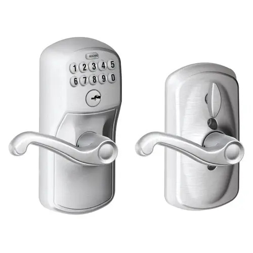 Keypad Entry with Flex-Lock, Plymouth Style, Flair Lever, Satin Chrome