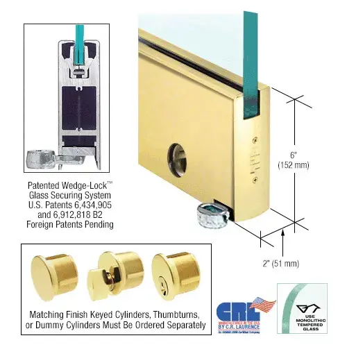 CRL Wedge-Lock Door Rails come in five standard finishes, and can be quoted in custom finishes and widths upon request. Rail Specifications, Templates and Hardware Packages are available from our Technical Sales Department.
