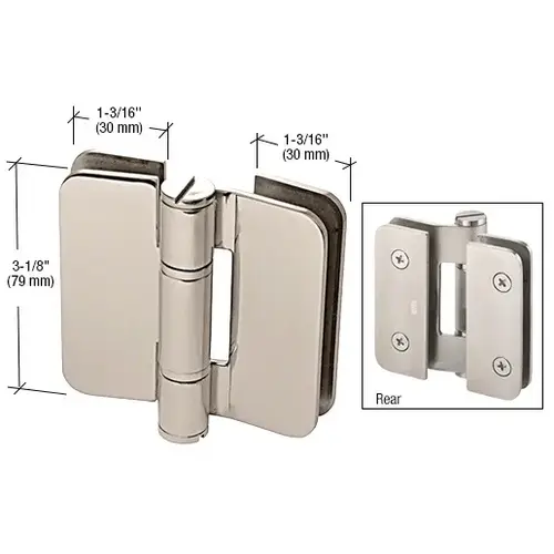 The CRL Zurich Series of professional Hinges for 5/16" (8 mm) to 3/8" (10 mm) tempered safety glass was the first Bi-fold Hinge offered by CRL. All seven Zurich Hinge models feature stainless steel or brass construction, and are available in several finishes. Only two holes per Hinge per panel are required, with no cut-out necessary.