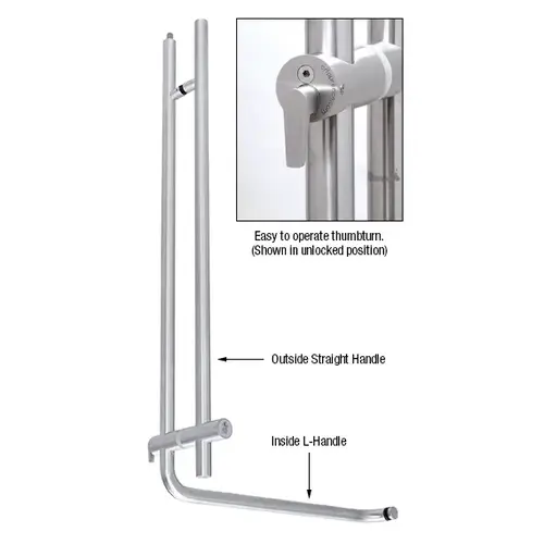 CRL LLPA Series Locking Ladder Pulls have a fully concealed deadbolt locking mechanism. No need to bend, simply turn a key or thumbturn located at a comfortable height above the finished floor to lock or unlock your doors. These Locking Ladder Pulls are intended for use with glass doors made from 1/2" to 3/4" (12 to 19 mm) thick tempered glass. They are available in brushed and polished stainless steel finishes.