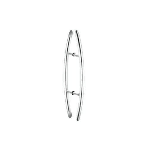 CRL Crescent Mid-Mount Pull Handle Series are for back-to-back mounting with supplied through-bolts. They are intended for use on doors made from 3/8" to 3/4" thick tempered glass. Stock sizes range from 12", 18", and 24" length. Standard finishes are polished stainless and brushed stainless. The pulls are constructed of 1-1/4" diameter stainless-steel tubing.