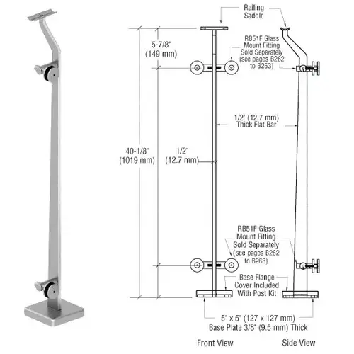 CRL P5 Series Post Railing Kits are designed for commercial or residential applications that meet or exceed guard rail code standards. P5 Posts are manufactured from flat bar stainless steel, and designed to support 1-1/4" (32 mm) to 1-1/2" (38 mm) Schedule 40 Horizontal Tubing.