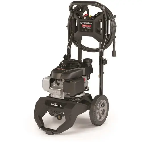 The PowerBoss 2800 maximum psi pressure washer powers through dirt and grime to clean vehicles, driveways, fences, decks, patios, and more. This pressure washer is powered by a reliable Honda GCV160 OHV Engine, so you can take on projects with confidence. With 10 in. wheels for easy mobility and a 25 ft. high-pressure hose, you can take the cleaning power wherever you need it.