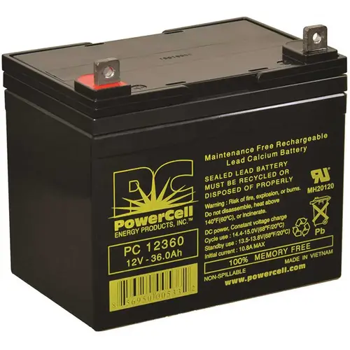 POWERCELL 12V 36 Ah Battery Lead Acid Recharg No spill AGM Nut and Bolt Terminal