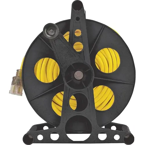 PowerZone portable cord reels provide tangle-free portable storage for extension cords, hose, rope, and holiday lights. The built-in stand helps make winding and storing easier. This cord reel is one of the fastest and simplest ways to organize, store and use your extension cords. Holds up to 100 ft of cord.
