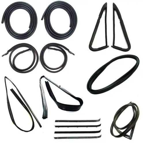 Protect your vehicle’s interior from the outside elements and reduce noise level while driving simply by replacing your dried-out or cracked door weatherstrip with a proven product that’s accepted in the industry. Made from the OEM specs to install and fit for an authentic appearance. Kit includes: Door Weatherstrip, Molded Upper Door Weatherstrip, Upper Channel (LH & RH), Vent Weatherstrip Kit (1 piece style), Rear Window Seal, Windshield Seal, Beltline Kit, Black Lockstrip for Windshield. *Note. This weatherstrip does not work with original sliders.