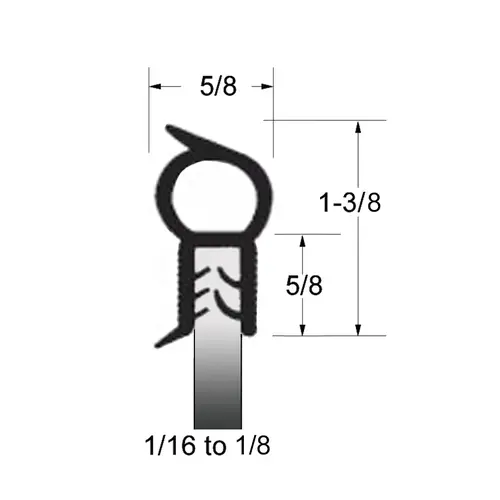 Universal Bulb Seal with rubber covered wire core push-on u-channel. Sold in a roll of 25 feet.