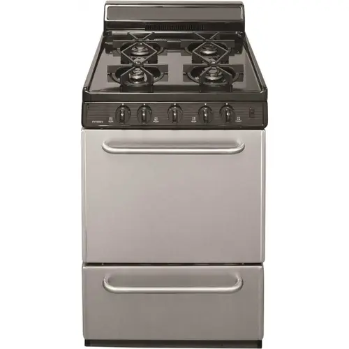 The Premier 24 in. Freestanding Electronic Spark Ignition Gas Range brings you the features you need while accommodating a smaller kitchen space. Equipped with removable (dishwasher safe) cast-iron grates and removable oven bottom, this range is a cinch to keep clean. Our Fully Insulated Oven contains a Baffled Oven Burner that disperses heat uniformly for even oven cooking.