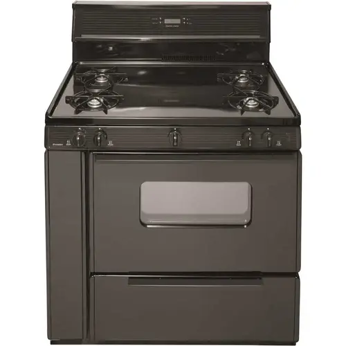 The Premier 36 in Freestanding Electronic Spark Ignition, Gas Range is cooking on a grand scale. Equipped with 4-removable (dishwasher safe) grates and removable oven bottom, this range is a cinch to keep clean. Our Fully Insulated Oven contains a Baffled Oven Burner that disperses heat uniformly and contains 2-heavy-duty oven racks with 4-adjustable positions.