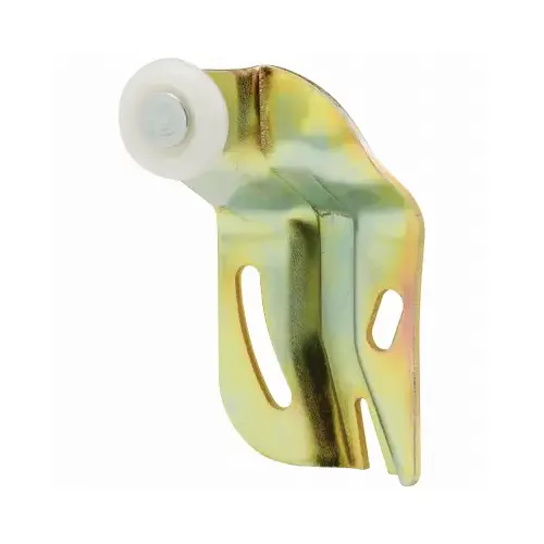 Fits Cox wardrobe doors in top-hung side-mounting applications. Steel offset adjustable bracket with 1/4 in W round edge nylon wheel. For 3/4 to 1-3/8 in thick by-passing doors up to 50 lb. Includes 2 #8 x 3/4 in Phillips pan head screws.