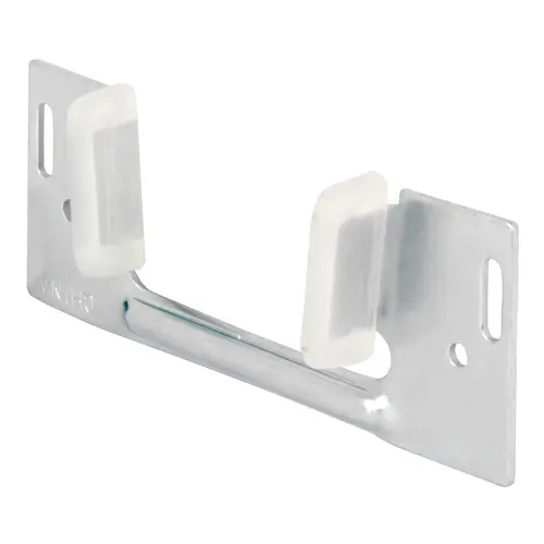 N 6566 is a pocket door guide for 1-3/8 in thick doors. It is a universal fit used by many pocket door manufacturers. Made of stamped steel with nylon guide tips, it mounts onto the bottom of the pocket door opening and under the trim. It keeps the door from hitting side to side as it slides back and forth.