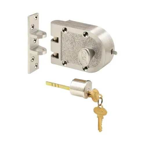 Lockset consists of lock, strike, rim cylinder, 2 keys, screw pack, cylinder trim ring, mounting plate and instructions