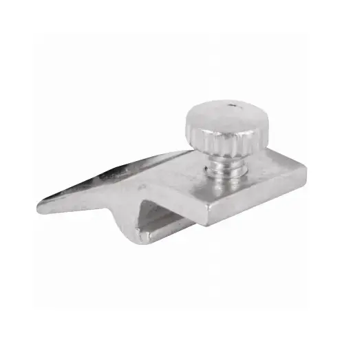 Use to secure storm panels to storm doors. Includes 8 clips and #8-32 x 5/16 in thumbscrews. Self-locking. 1 in L x 1/2 in W. Aluminum finish clips supplied with aluminum thumbscrews and white clips supplied with white nylon thumbscrews.