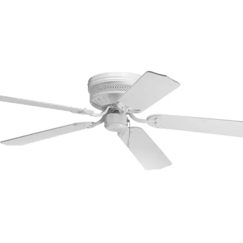 Airpro Hugger 52" 5-blade Ceiling Fan. White Blades With White Finish. Powerful And Reversible 3-speed Motor W/ Triple-capacitor Control. Hugger Style Housing Permits Fan Installation On Lower Ceilings. Compatible With Universal Light Kits. Blade Arms With Preinstalled Motor Screws And Paper Washer. Mfg #P2525-30