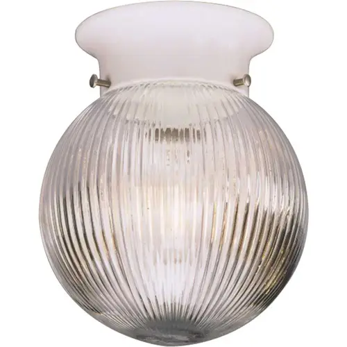 Progress White One-Light Flush Fixture 6.375 X 7.25. White Finish. Clear Ribbed Glass. 6 -In Diameter X 7-1/4 -In Height. Uses (1) 60 Watt Medium Base Bulb (Not Included). Mfg #P3599-30